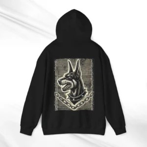 High-drive dogs crave clarity, leadership, and a handler who isn’t afraid to set rules. If you’re the kind of owner who embraces the gritty reality of balanced training, our Doberman AF Hooded Sweatshirt was made for you. With its unapologetic chest hit and the hardcore, vintage-style chained Dobie on the back, it’s a statement piece for the owner who knows you can’t bribe genetics. Wear it proudly on your local trails, knowing your purchase directly funds the vetting and balanced rehabilitation of heavy-hitting rescue dogs at Willow’s Wish Doberman Rescue.