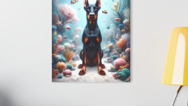 Turn your walls into a wonderland. This surreal underwater Doberman print radiates strength, beauty, and heart.