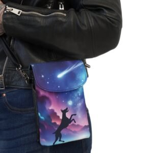 Elevate your daily carry experience with our enchanting Celestial Doberman phone wallet. This artistic accessory captures the magic of a Doberman reaching for the stars, silhouetted against a breathtaking cosmic backdrop featuring vibrant auroras, twinkling stars, and a dramatic shooting star. Perfect for dog lovers who appreciate celestial beauty and dreamy aesthetics.