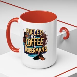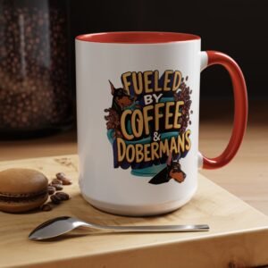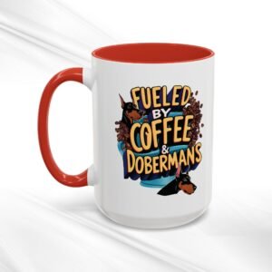 Fueled by Coffee & Dobermans 15oz Accent Mug – Dishwasher & Microwave Safe, Supports Doberman RescuFueled by Coffee & Dobermans 15oz Accent Mug – Dishwasher & Microwave Safe, Supports Doberman Rescu