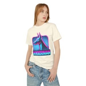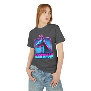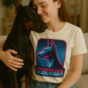 With a retro-futuristic Doberman design straight out of a synthwave dream, this tee is made for dog people who don’t do subtle. Whether you’re cruising the dog park or bingeing sci-fi with your ride-or-die Dobie, this shirt brings major style and even more attitude.