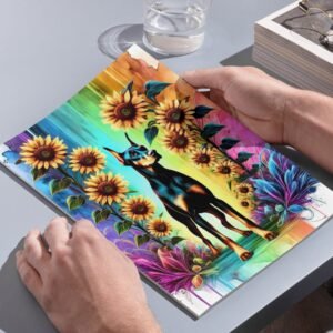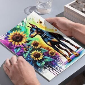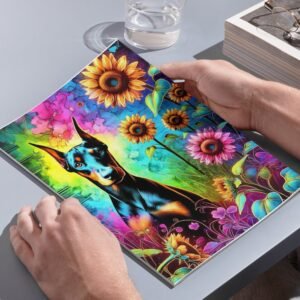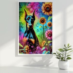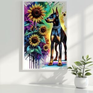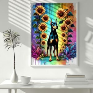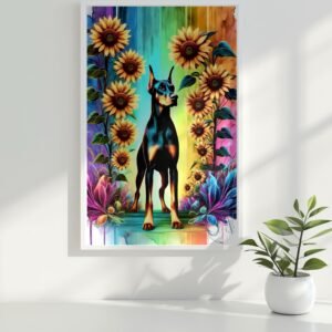 Celebrate the fierce beauty of Dobermans and the joyful energy of blooming sunflowers with the Guardians in Bloom Collection! This vibrant 3-piece set features three unique art prints: Blossom Sentinel, Sunflower Guardian, and Vivid Protector — each one bursting with color, character, and Doberman pride.