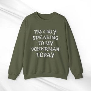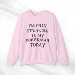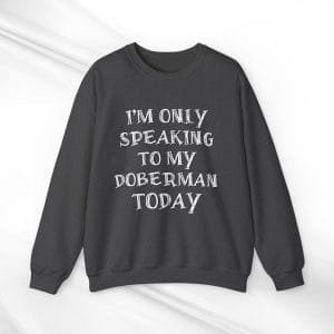 Find comfort and a unique connection with your Doberman in our “I’m Only Speaking to My Doberman Today” crewneck sweatshirt. This piece is a must-have for Doberman aficionados who enjoy a sprinkle of humor with their style, offering a cozy blend of snugness and playful wit.