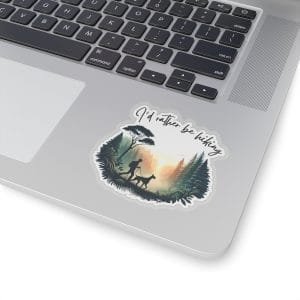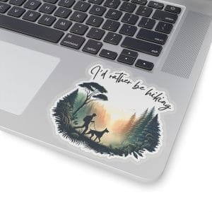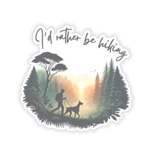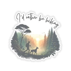 Blend your passion for Dobermans and hiking with this striking vinyl sticker. This artfully designed decal captures the spirit of outdoor adventure, featuring a elegant Doberman silhouette against a nature backdrop with the message “I’d Rather Be Hiking.”