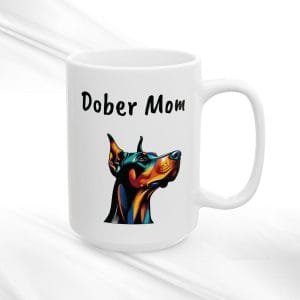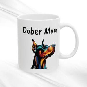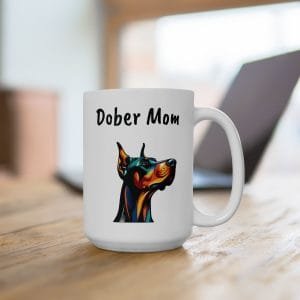 Enhance your daily beverage experience with our cheeky Doberman Mom ceramic mug. Available in three generous sizes (11oz and 15oz), this mug combines striking Doberman artwork with clever wordplay, making it the perfect vessel for any proud Doberman parent. The front features a beautifully rendered Doberman portrait in rich browns and black with “Dober Mom” text, while the reverse playfully declares “Like a dog mom but way cooler.”