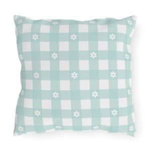One side stuns with a bold sunset beach scene framed in a Doberman profile. The flip side? A breezy turquoise gingham with daisy accents that screams backyard chill. Made from durable spun polyester that resists water, UV rays, and boring design trends. This pillow pops with personality—and pride.