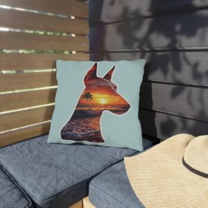 This pillow doesn’t just bring the vibe—it is the vibe. Our Sunset Doberman Outdoor Throw Pillow captures that golden-hour glow inside the silhouette of the world’s most majestic creature: the Doberman. Perfect for patios, porches, and poolside lounging, it’s made to stand up to summer—just like your Dobie’s energy at 6 a.m.