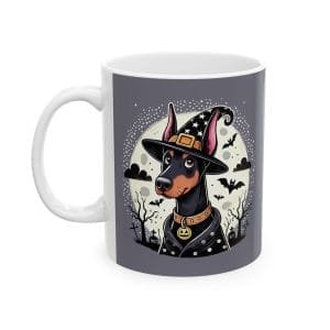 Transform your morning coffee into a spooky delight with our Spooky Doberman Witch Ceramic Mug! The durable white ceramic material and scratch-resistant finish ensure long-lasting use. With two sizes to choose from and a comfortable c-shaped handle, enjoy your favorite beverage in style.
