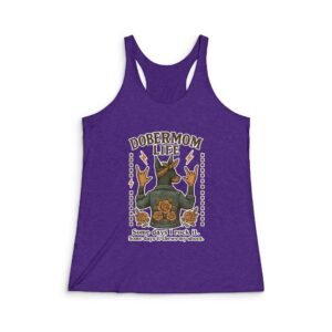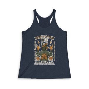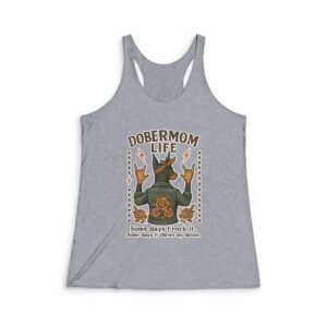 Welcome to DoberMom Life, where the highs are high, the shoes are sometimes chewed, and the love runs deeper than your Dobie’s bark. This racerback tank was made for the Doberman mom who owns her chaos—and rocks it in style. With a fierce tattoo-style Doberman graphic and the realest caption ever (“Some days I rock it. Some days it chews my shoes”), this tank is the daily uniform for moms who run on grit, grace, and unconditional love.