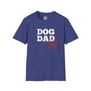 Show off your love for dogs with this ‘Dog Dad AF’ T-Shirt. Perfect for dog lovers who want to express their personality and style. This shirt is a great addition to your casual wardrobe and can be worn on any casual occasion. Ideal for dog dads celebrating Father’s Day or any dog-related holiday.