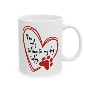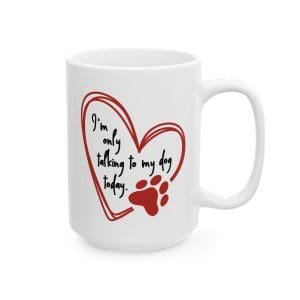 Embrace your preferred conversation partner with our charming dog lover’s ceramic mug. Featuring a playful typography design declaring “I’m Only Talking to My Dog Today” – a sentiment that perfectly captures those days when your pup is all the company you need. Choose from three generous sizes to match your beverage needs: 11oz (325ml), 15oz (444ml), or 20oz (591ml).