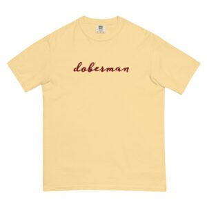 Soft as your Dobie’s ears, strong as your bond. This embroidered “doberman” tee blends effortless style with subtle pride, wrapped in the dreamy comfort of a vintage-washed heavyweight shirt. The lowercase script is stitched, not printed—because the love runs deeper than screen-printed fluff.