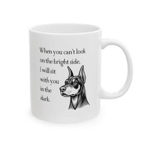 Enhance your morning routine with our Loyal Doberman Companion Ceramic Mug. Made of durable white ceramic with a scratch-resistant finish, this mug comes in three sizes and features a C-shaped easy-grip handle. Perfect for coffee or tea lovers, start your day with your loyal companion by your side!