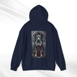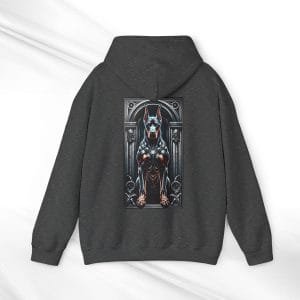Embrace the fierce elegance of the “Guardian of the House” Gothic Doberman Hoodie – a powerful tribute to the Doberman’s legendary loyalty and protective spirit. This unisex streetwear hoodie is perfect for those who admire the noble strength of this breed and want to make a bold style statement. Featuring a striking gothic Doberman graphic on the back and “Guardian of the House” text on the front, this unique hoodie is a top-tier choice for both men and women, making it an unforgettable gift for any dog lover.