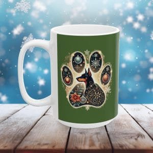 Festive Doberman Paw Print Holiday MugFestive Doberman Paw Print Holiday Mug