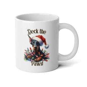 Bring holiday cheer to your morning routine with our charming “Deck The Paws!” jumbo ceramic mug. This generously sized 20oz coffee cup combines festive design with practical functionality, making it the perfect vessel for your favorite hot beverages during the holiday season and beyond.