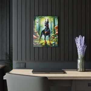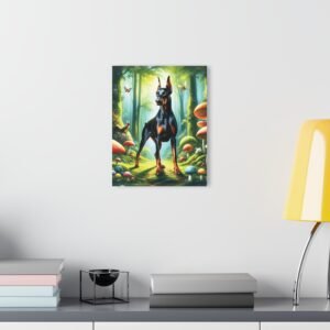 Standing tall among enchanted mushrooms and dappled forest light, Doberman Guardian of the Glade channels pure sentinel energy. It’s the protector pose every Doberman parent knows—that quiet intensity, that alert stance, that majestic presence. Now captured in lush, otherworldly detail.