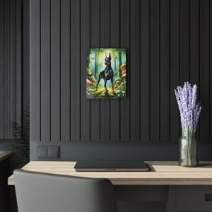 Printed on premium 0.25″ thick archival-grade acrylic, this high-definition wall art is water-resistant, easy to clean, and practically glows with depth and color. Ready to hang with a sleek French cleat system, it brings myth, magic, and Dobie pride into any space.