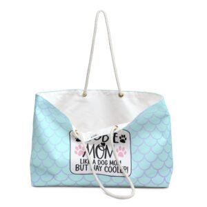 This Weekender Bag is perfect for the Mermaid Dobie Mom Dog Lover who loves to travel. The design on the bag adds a playful and fun vibe, making it a great accessory for weekend getaways or beach trips. Ideal for dog lovers and those who enjoy unique and colorful designs. Perfect for summer vacations, weekend trips, or as a gift for a dog-loving friend.