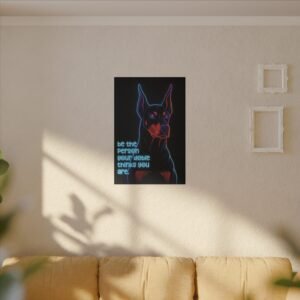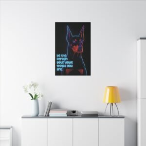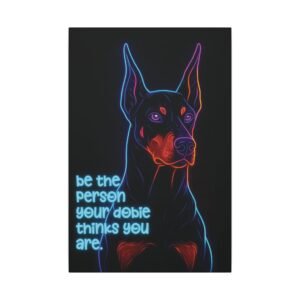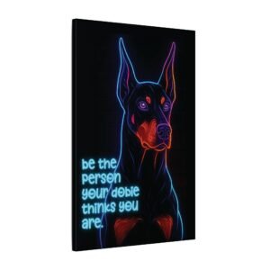 Your Dobie already thinks you’re a superhero. This canvas just reminds you to live like it. Featuring a striking neon-style Doberman graphic and the powerful words “Be the person your Dobie thinks you are,” this matte-finish canvas blends modern edge with heartfelt meaning.