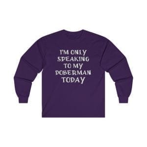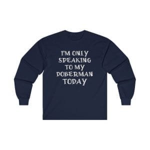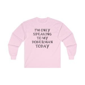 Find comfort and canine companionship in our “I’m Only Speaking to My Dog Today” long sleeved t-shirt. Designed for dobie lovers who enjoy a touch of humor, this sweatshirt is the perfect blend of snug style and playful wit.