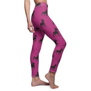 Unleash your bold style with our leggings adorned with sleek Doberman silhouettes. Set against a captivating lavender backdrop, these leggings pay tribute to the elegance and power of the iconic Doberman breed. Meticulously crafted from a blend of 95% polyester brushed suede and 5% spandex, they ensure comfort paired with enduring quality, all complemented by the refined suede texture.
