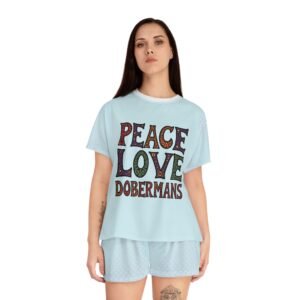 Women’s Pajama Shorts Set – Peace, Love, Dobermans