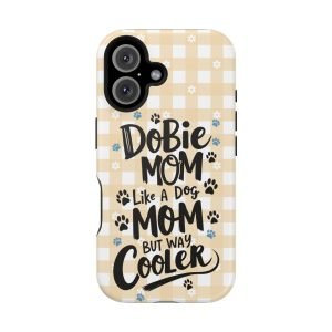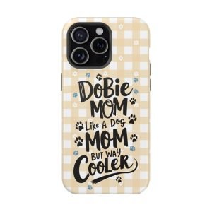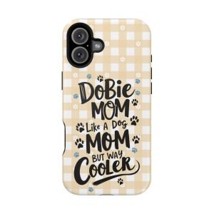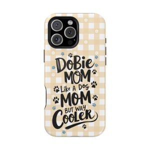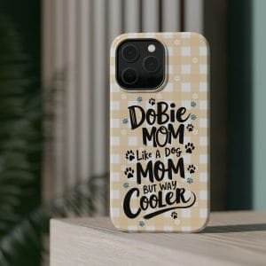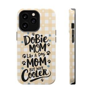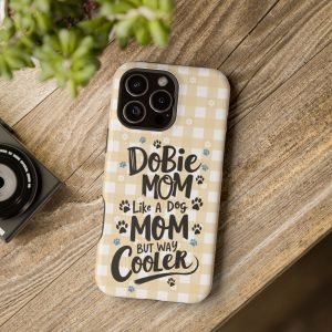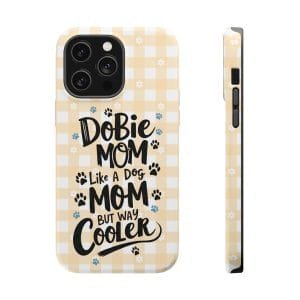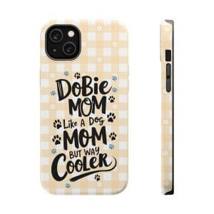 Show off your love for your Dobie with this Dobie Mom Phone Case that is not only tough but also MagSafe compatible. It’s perfect for dog moms who want to protect their phones in style. Ideal for dog lovers and pet owners. Great for Mother’s Day or as a birthday gift for a Dobie Mom.