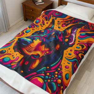 Step into a world where color knows no bounds with our Psychedelic Doberman Velveteen Plush Blanket. This blanket isn’t just a splash of color; it’s a bold statement of style and a plush tribute to the spirited Doberman.