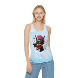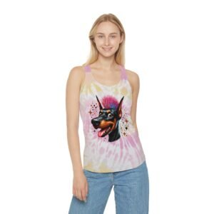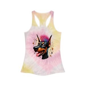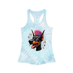 This tank is not here to behave. Featuring a wild-eyed Doberman with a neon mohawk and emoji-style flair, the Punk Rock Dobie tank is loud, proud, and absolutely unhinged—in the best way. Set against a dreamy tie-dye backdrop, it’s your summer statement piece for when the vibes are chaotic and you’re fully leaning in.