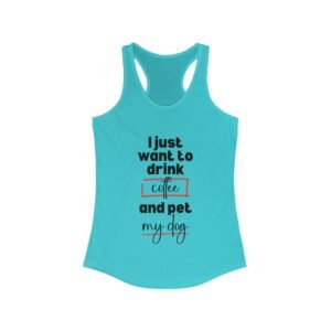 Let’s be honest—your morning routine isn’t complete without two essentials: a strong cup of coffee and your Doberman by your side. This racerback tank sums it up perfectly with bold, no-nonsense text: “I just want to drink coffee and pet my dog.” Same.