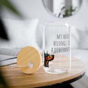 A vibrant and durable 16oz sipper glass featuring the design ‘My heart belongs to a Doberman’. Perfect for dobie lovers who want to show their affection for their favorite breed. Ideal for use during outdoor gatherings, picnics, or relaxing at home.