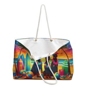 Sun, sand, and sassy Dobermans—what more could you need? This oversized weekender tote is your go-to beach bag, featuring a vibrant, tropical design with three Dobermans living their best island life. Whether you’re heading to the shore, poolside, or a weekend getaway, this bag has plenty of room for all your essentials.