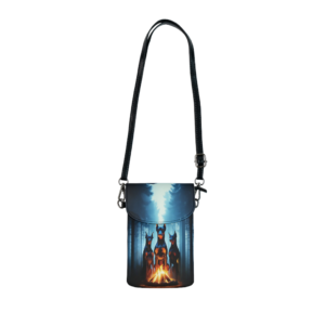 Upgrade your daily carry experience with our enchanting Moonlit Guardians phone wallet. This artistic accessory captures three majestic Dobermans sitting before a glowing campfire in a misty forest, illuminated by ethereal moonlight filtering through towering trees. Perfect for dog lovers who appreciate mysterious forest scenes and magical atmospheres.
