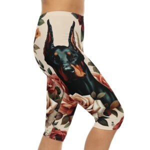 Women's Capri Leggings - Vintage Doberman RosesWomen’s Capri Leggings – Vintage Doberman Roses