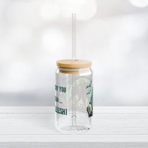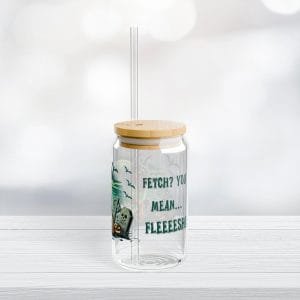 Unleash the spooky spirit with our Zombie Doberman Halloween Glass Tumbler! This chilling design features a ferocious Doberman in zombie form, prowling through a haunted graveyard. With the playful text “Fetch? You mean… FLEEESH!” on the back, this tumbler adds a dash of macabre humor to your Halloween drinkware collection.